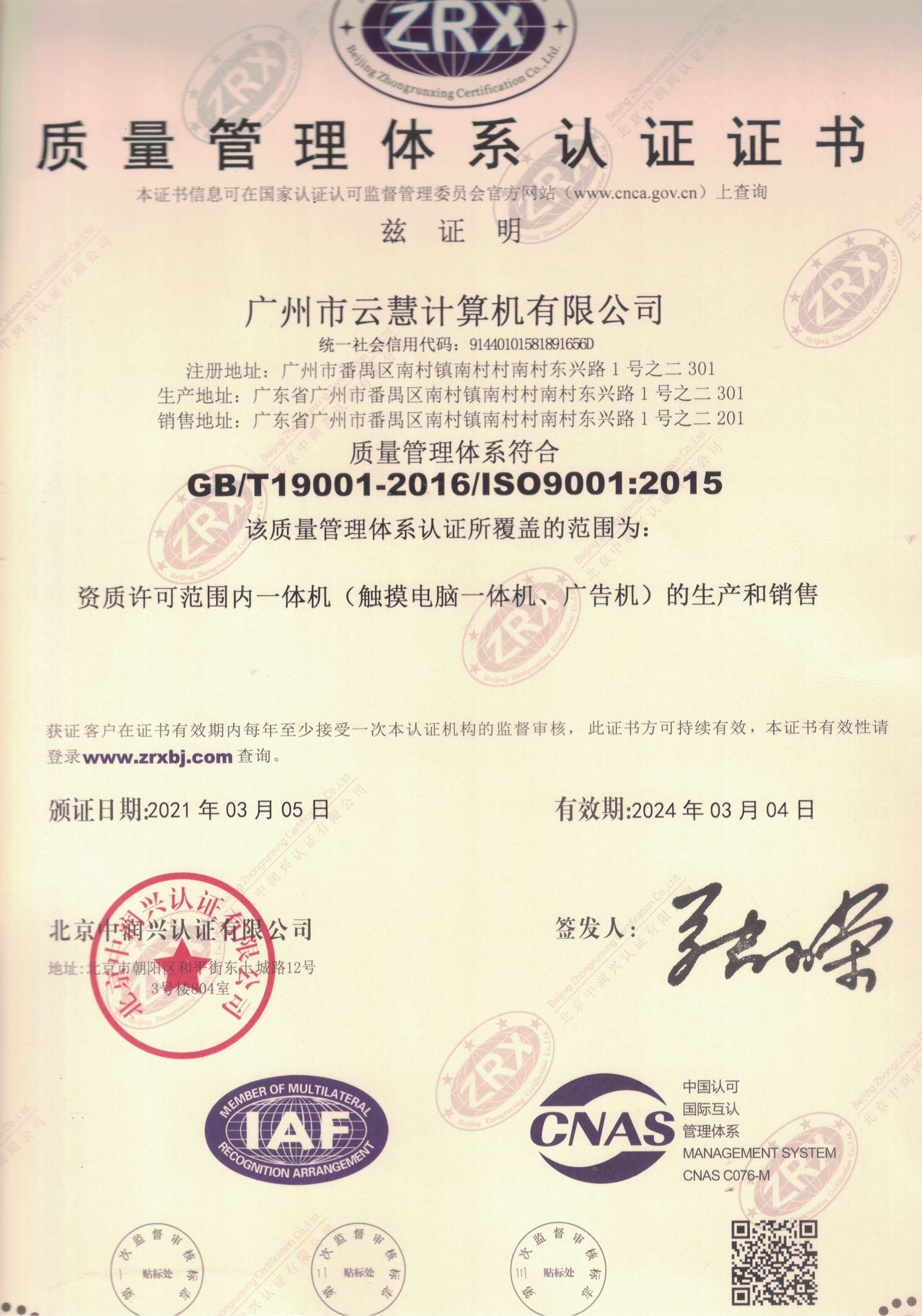朗歌斯ISO9001證書
